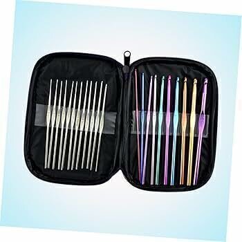 ¡Hola, amante del crochet! Te presentamos nuestro Set de agujas de crochet, un conjunto fabuloso con 22 agujas que te harán la vida más fácil en tus proyectos de tejido. Desde las más finitas de 0.5 mm hasta las más gruesas de 6.5 mm, ¡tenés todo lo que necesitás en un solo lugar! y en un estuche con cierre , que asegura no pierdas ninguna